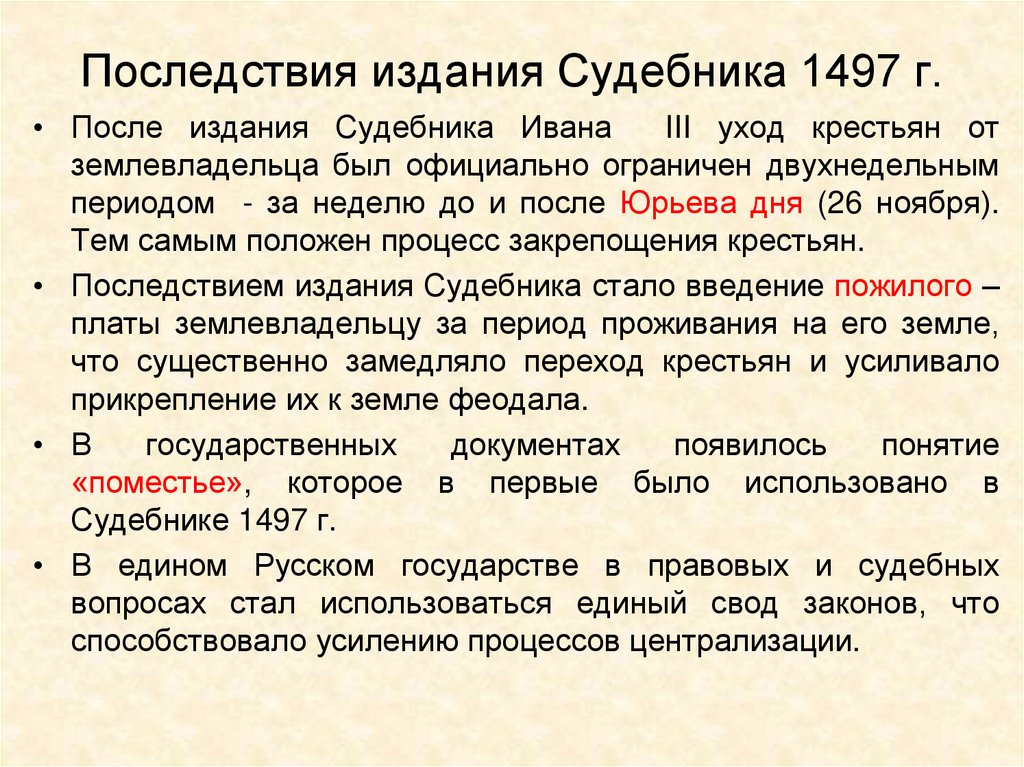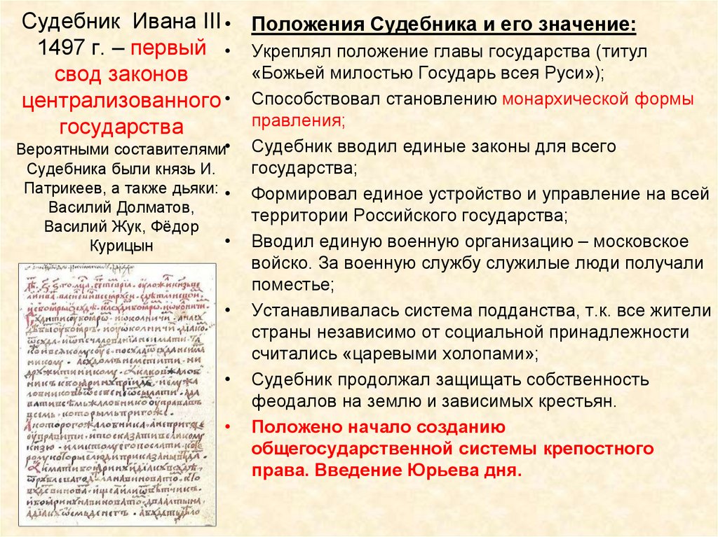 княжества, Тверского и т. д.), он принимает единый свод законов (Судебник