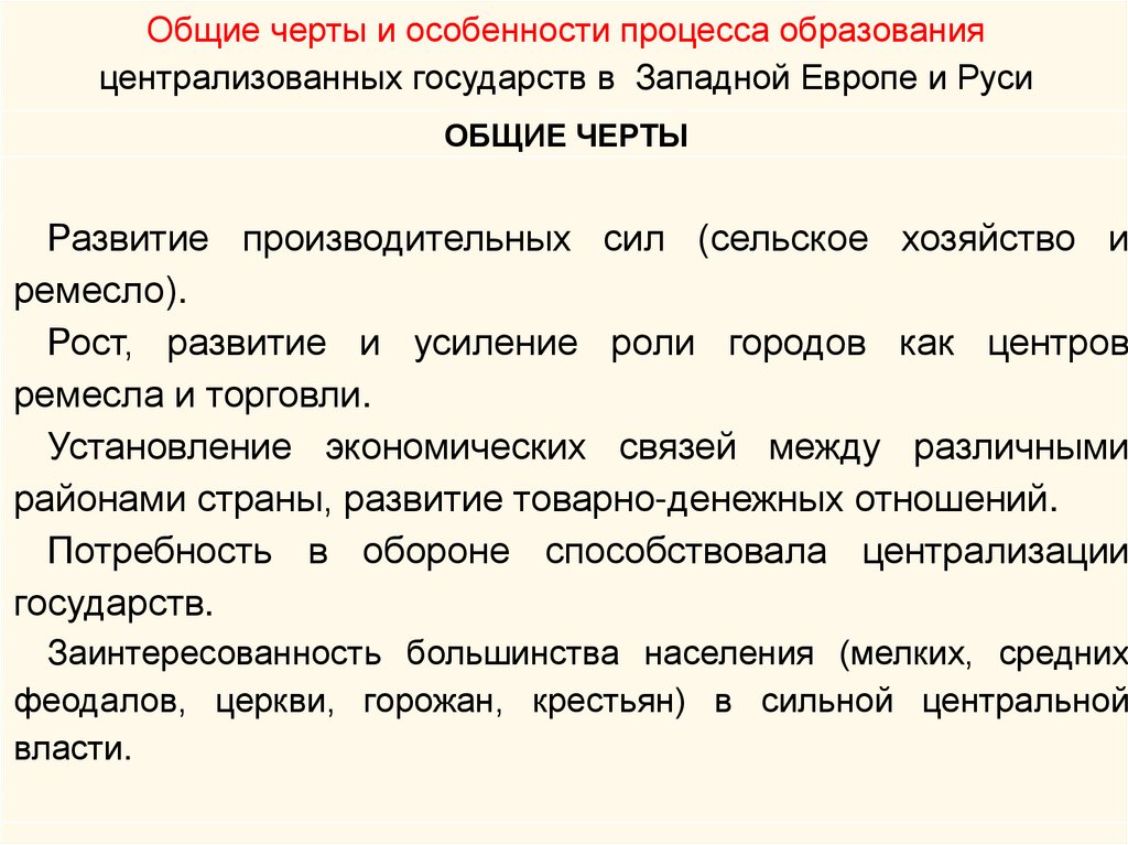 Общие черты и особенности процесса образованияцентрализованных государств в Западной Европе и Руси