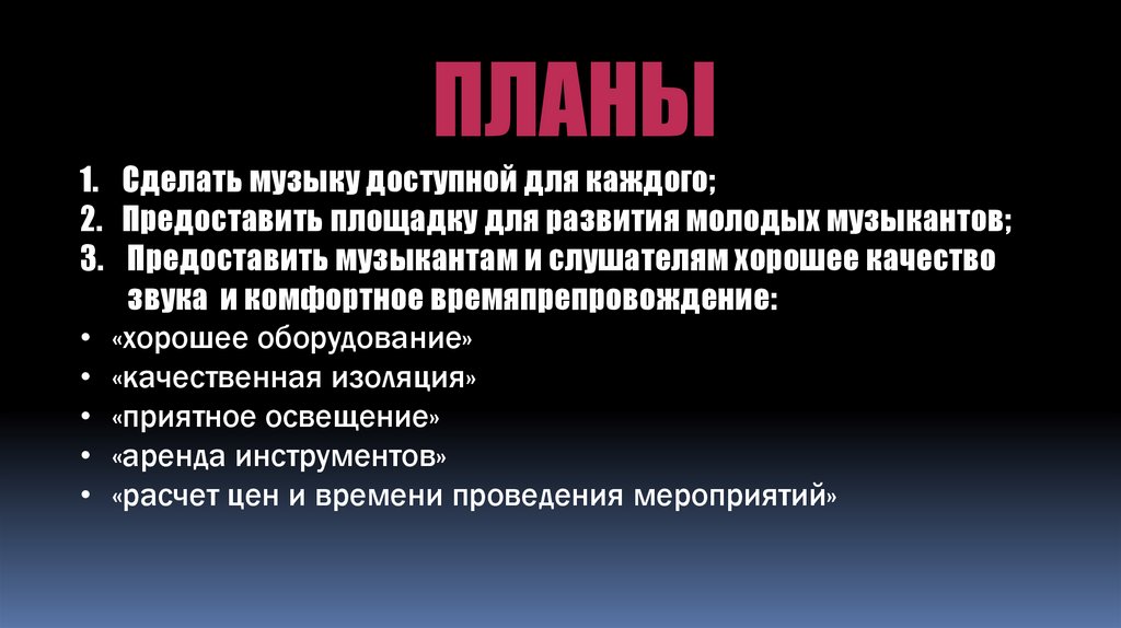 ПЛАНЫ1. Сделать музыку доступной для каждого;