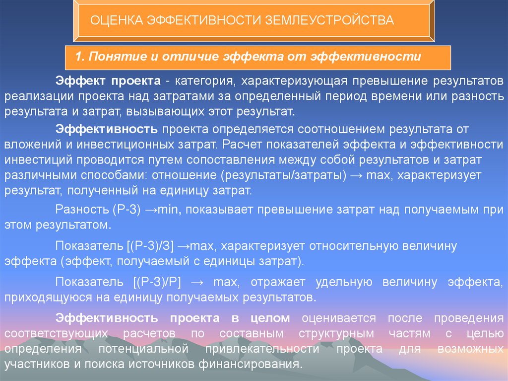 ОЦЕНКА ЭФФЕКТИВНОСТИ ЗЕМЛЕУСТРОЙСТВА1. Понятие и отличие эффекта от эффективности