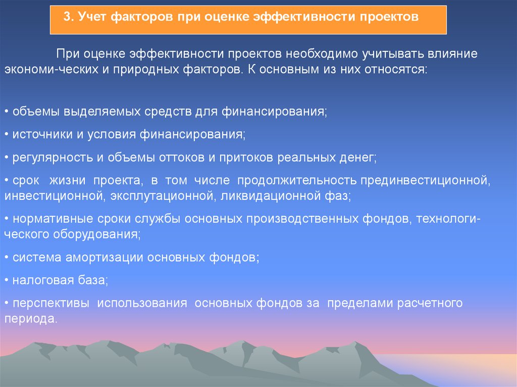 3. Учет факторов при оценке эффективности проектовПри оценке эффективности проектов необходимо учитывать влияние