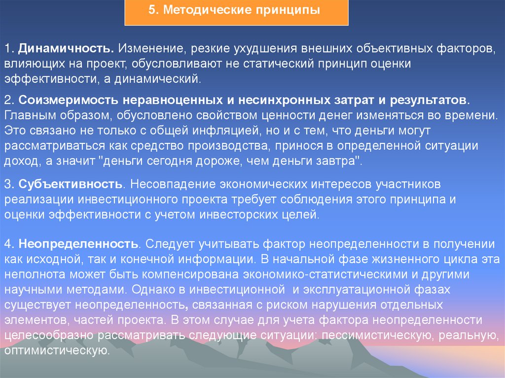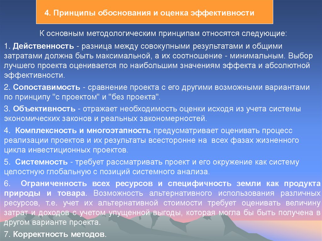 4. Принципы обоснования и оценка эффективностиК основным методологическим принципам относятся следующие: