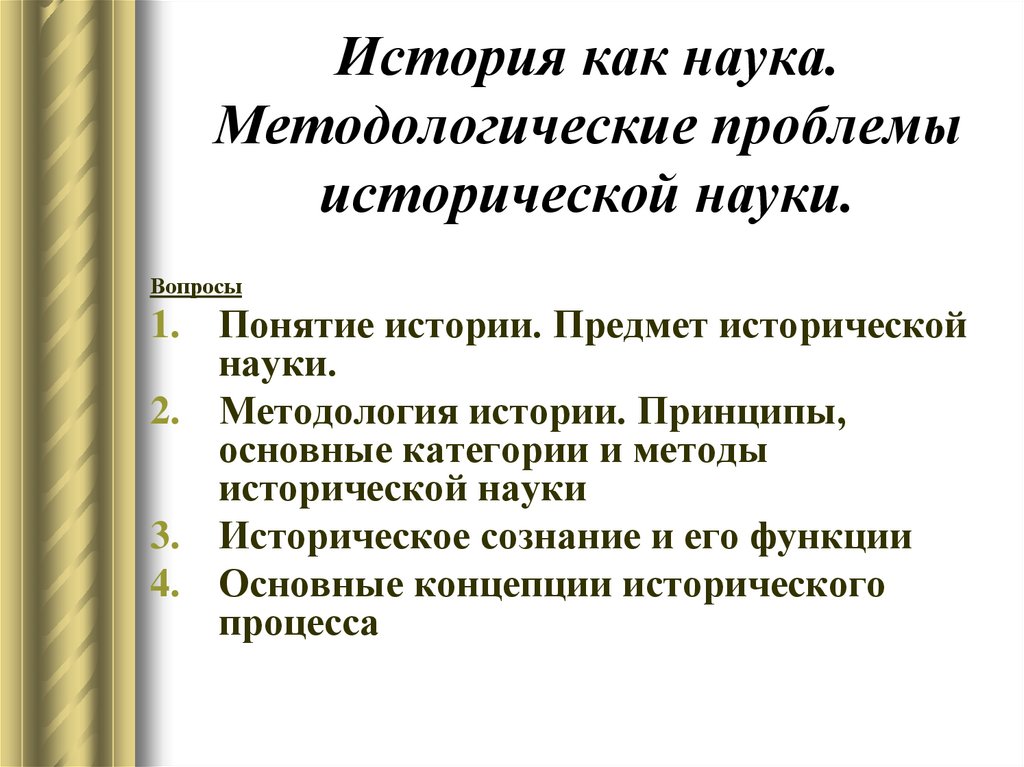 2. История как наука. Методологические проблемы исторической науки.