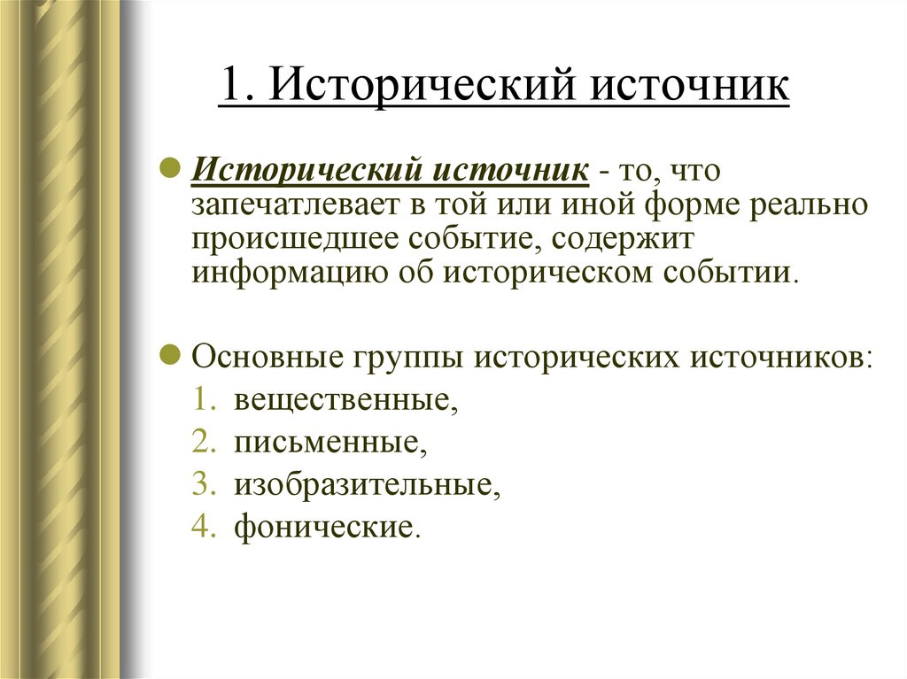 Исторический источник - то, чтозапечатлевает в той или иной форме реально