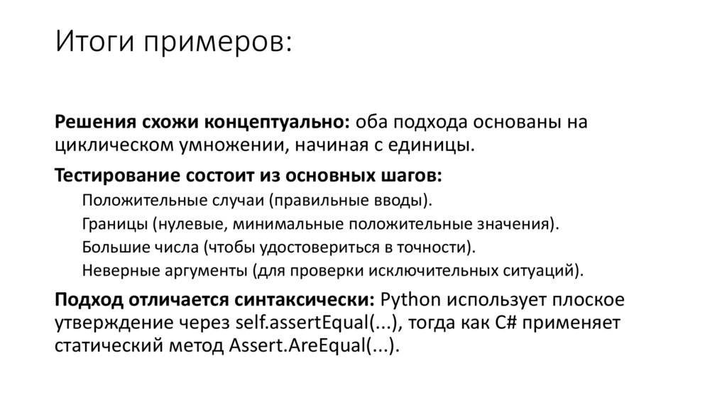 утверждение через self.assertEqual(...), тогда как C# применяет