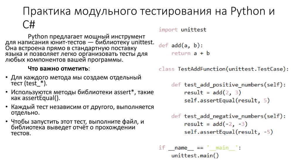 Python предлагает мощный инструментдля написания юнит-тестов — библиотеку unittest.