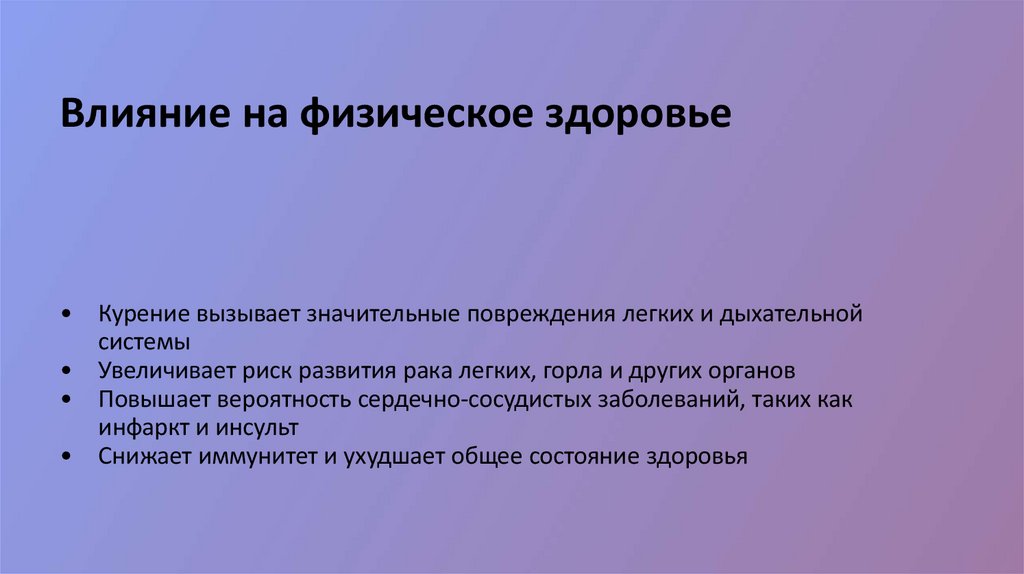 как курение влияет на физическое и психическое здоровье, а также на социальные и