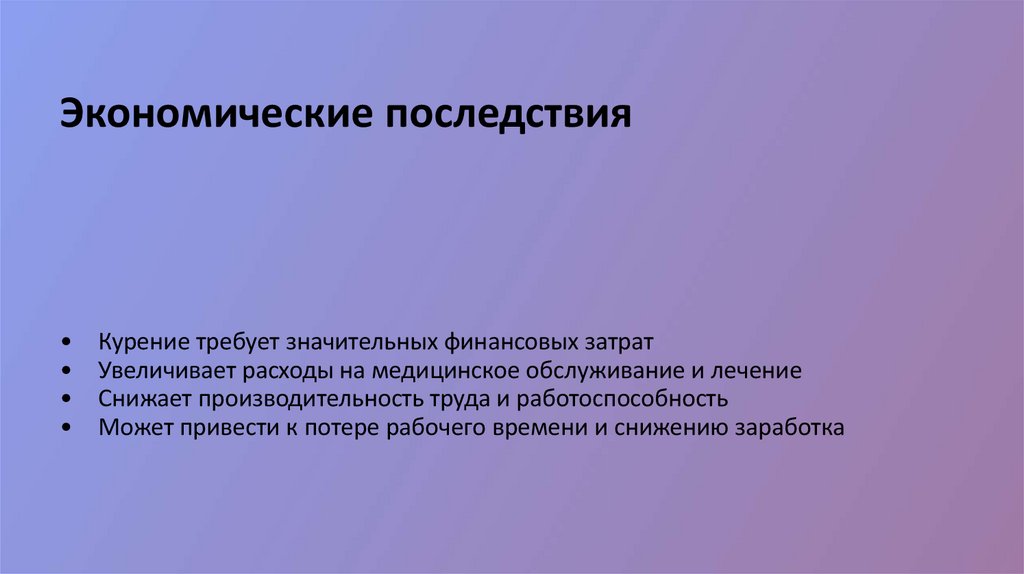 Экономические последствияКурение требует значительных финансовых затрат