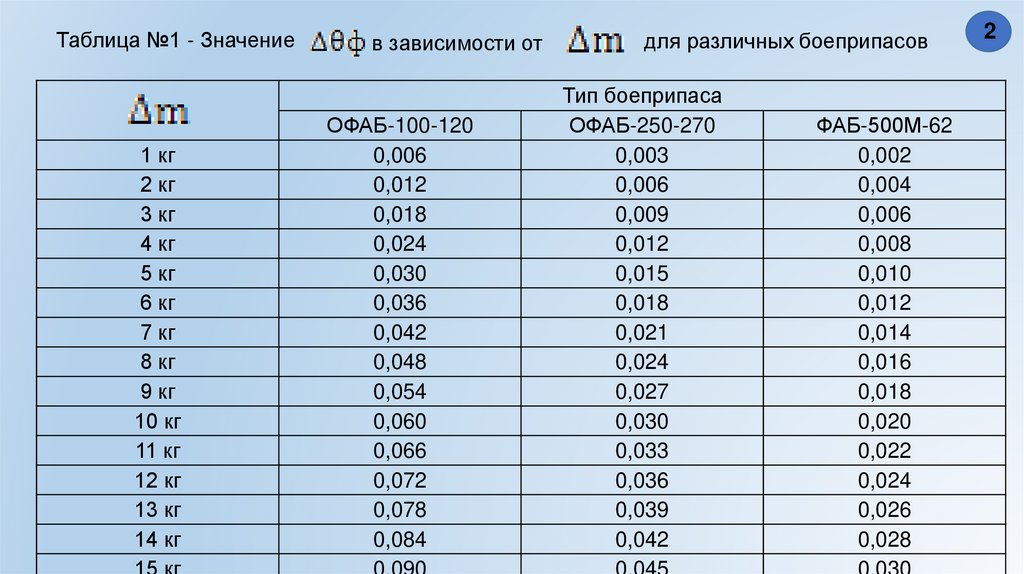 2. Повышение точности боевого применения свободнопадающих авиабомб путем учета фактической массы боеприпаса