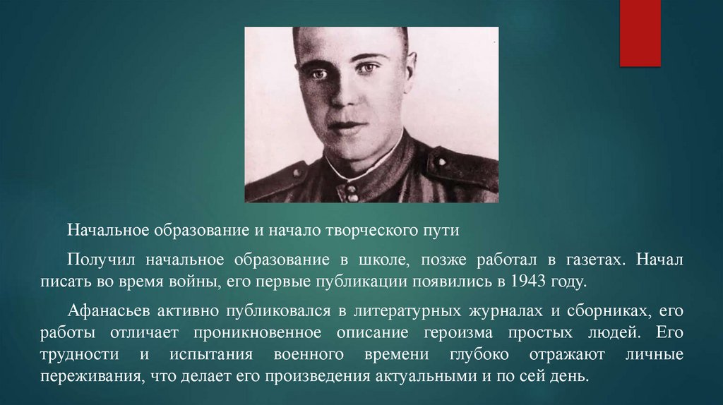 ужасные события фронта, что отразилось в его творчестве. Афанасьев хотел