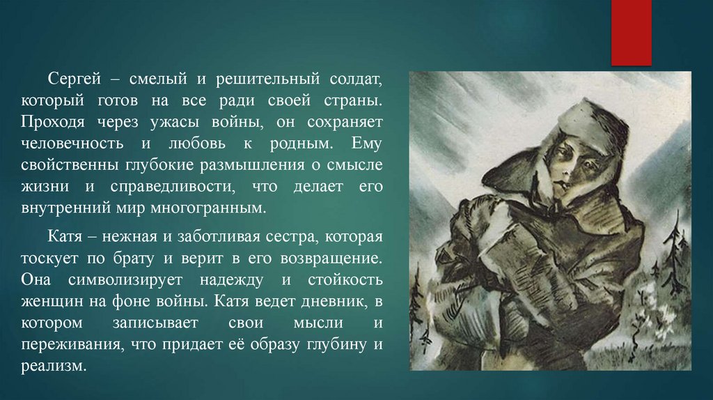 Главные герои – это фронтовик Сергей иего сестра Катя.