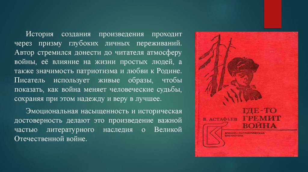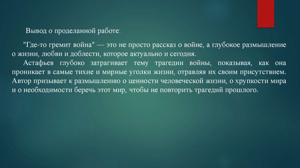 Вывод о проделанной работе:"Где-то гремит война" — это не просто рассказ о войне, а глубокое размышление