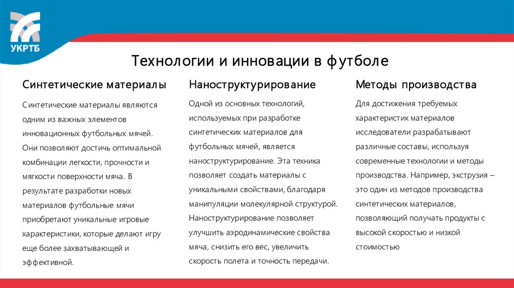 Тех нол огии и иннов ации в ф утбол еСинтетические материал ы