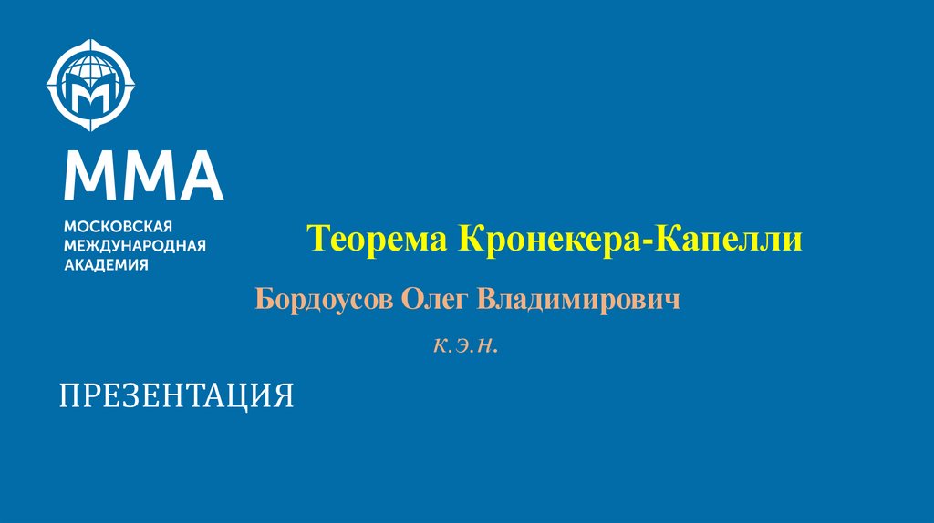 Теорема Кронекера-Капелли. Лекция 4. Основы теории принятия управленческих решений