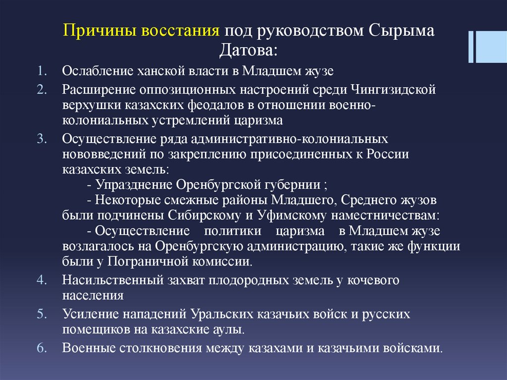 Причины восстания под руководством Сырыма