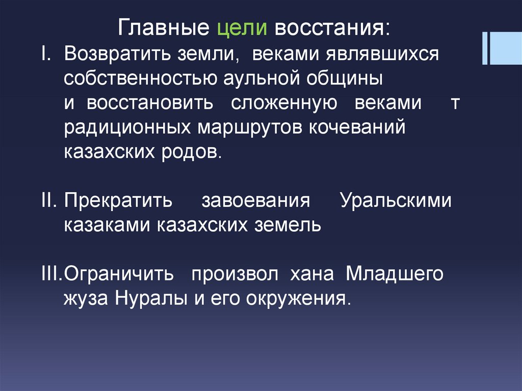 Главные цели восстания: