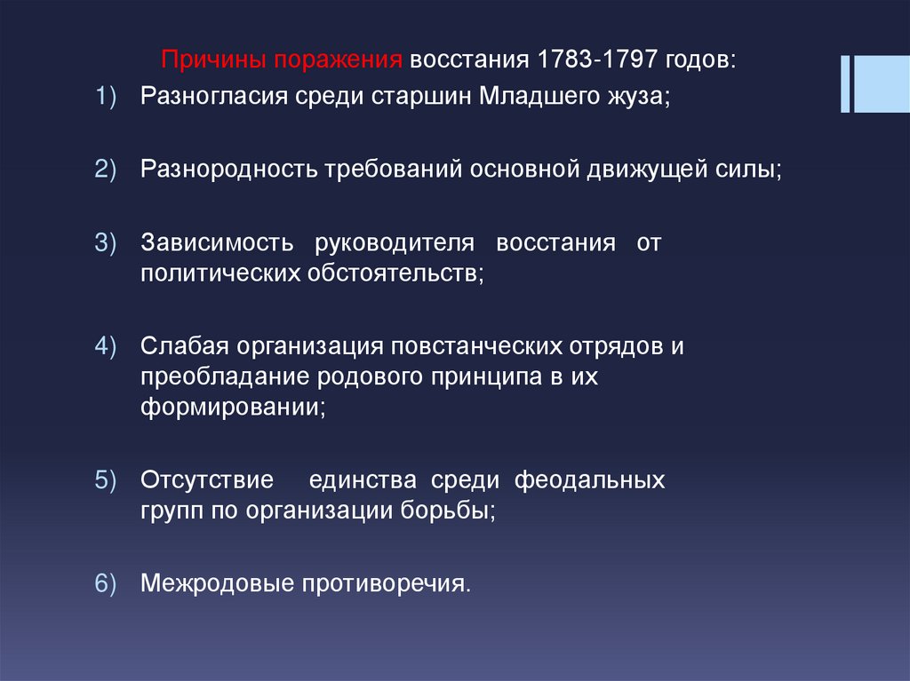Причины поражения восстания 1783-1797 годов: