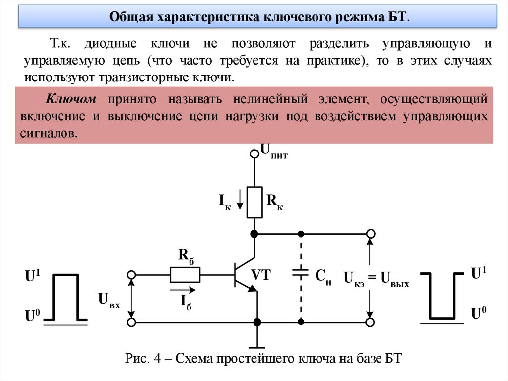 Общая характеристика ключевого режима БТ.Т.к. диодные ключи не позволяют разделить управляющую и