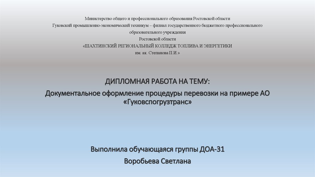 Министерство общего и профессионального образования Ростовской областиГуковский промышленно-экономический техникум – филиал государственного бюджетного профессионального