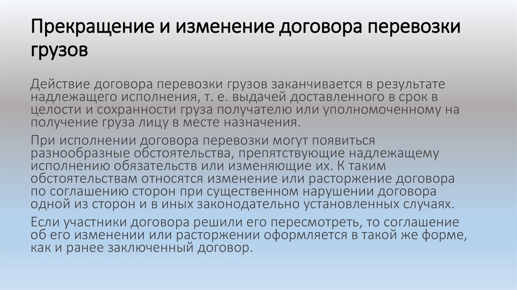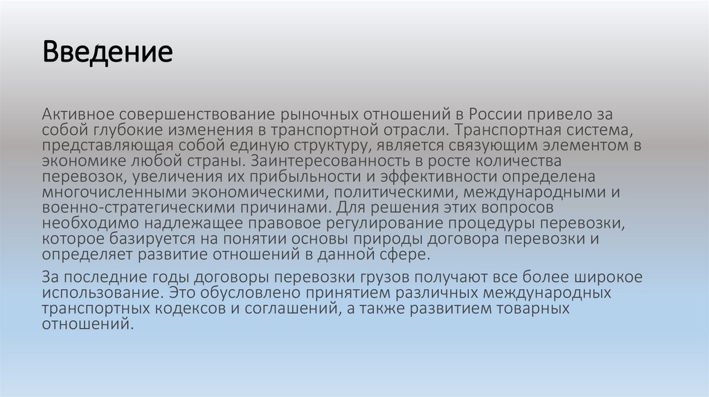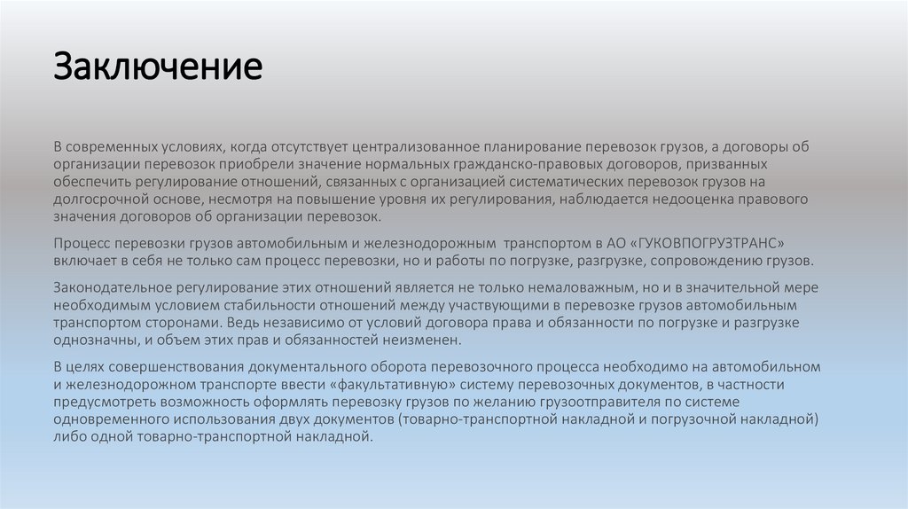 ЗаключениеВ современных условиях, когда отсутствует централизованное планирование перевозок грузов, а договоры об