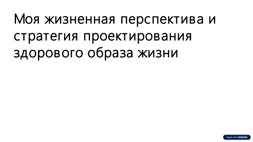 Моя жизненная перспектива и стратегия проектирования здорового образа жизни
