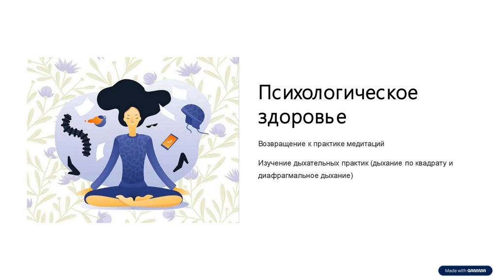 5. Определить стратегии для поддержания психологического здоровья. • Метод: изучение методов управления стрессом и