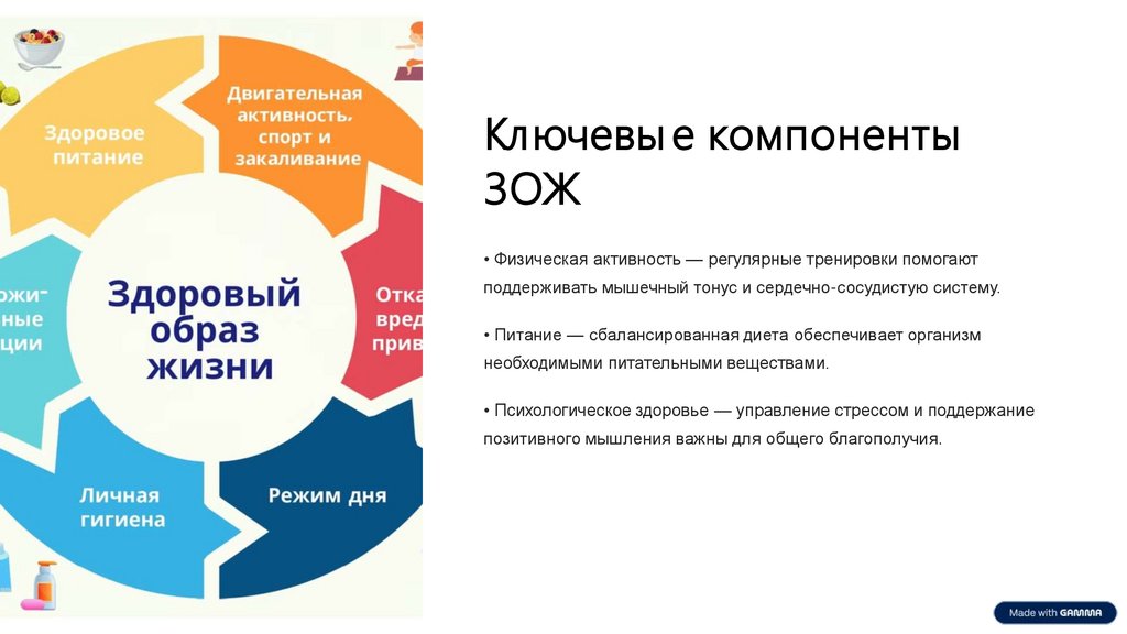 в себя физическую активность, правильное питание и методы поддержания психологического здоровья. Реализация данной