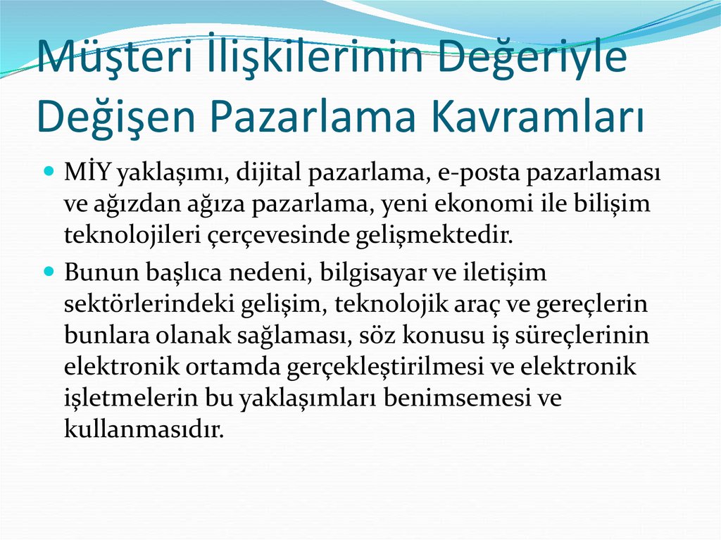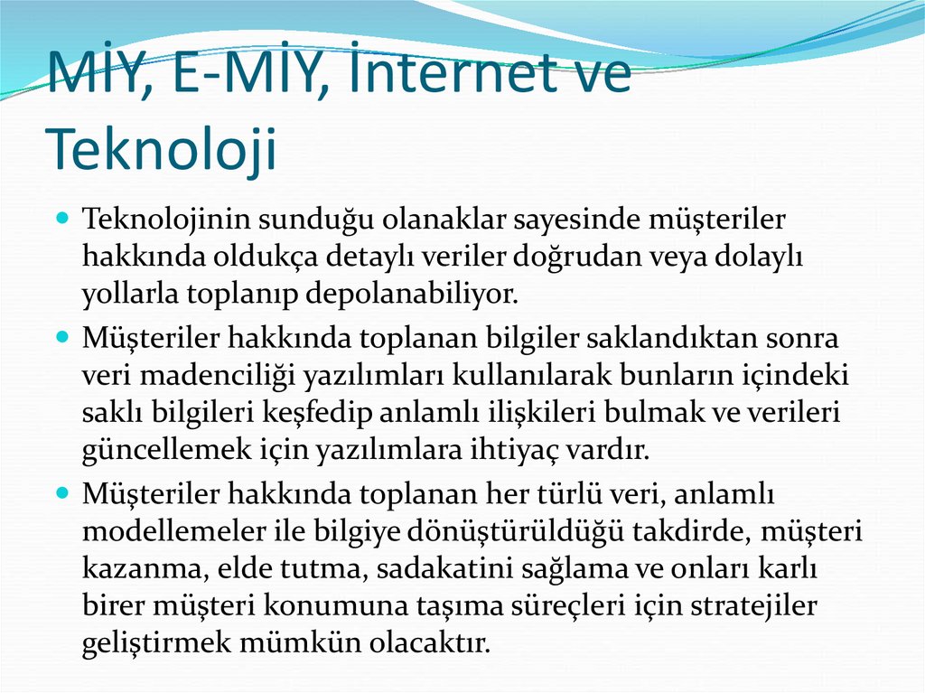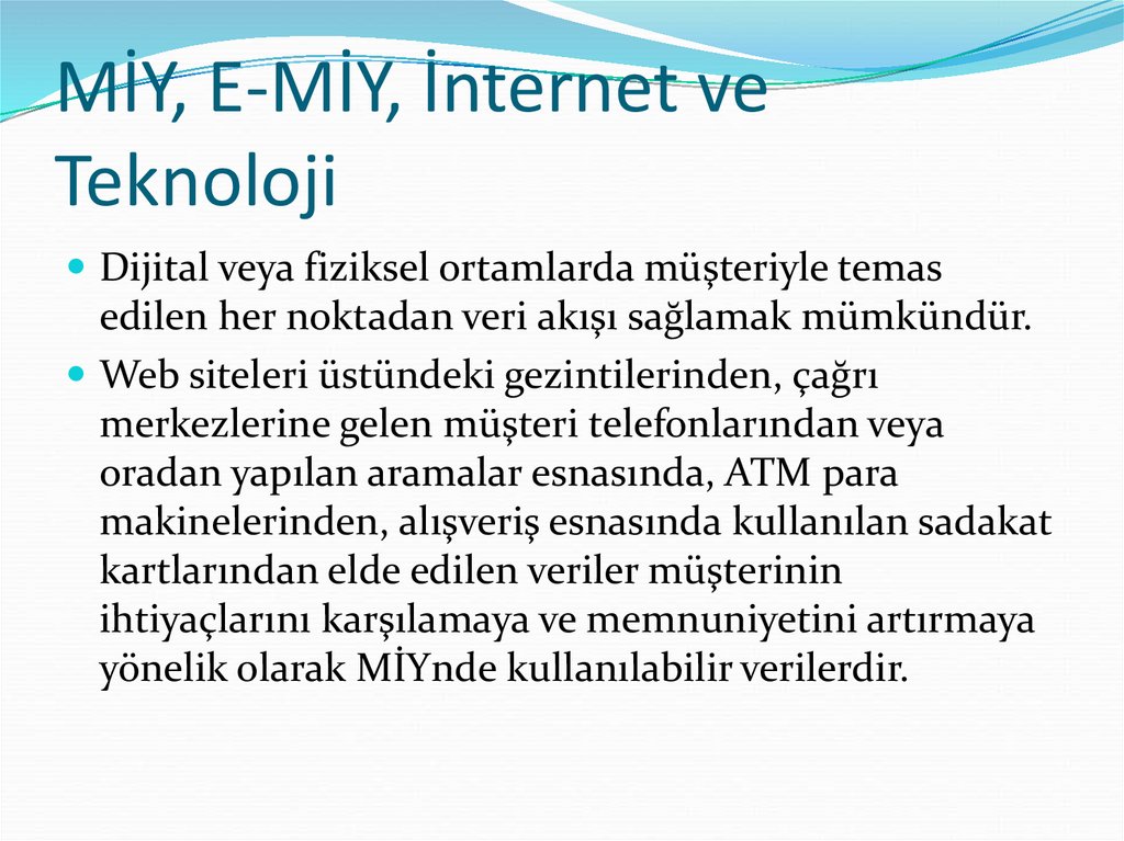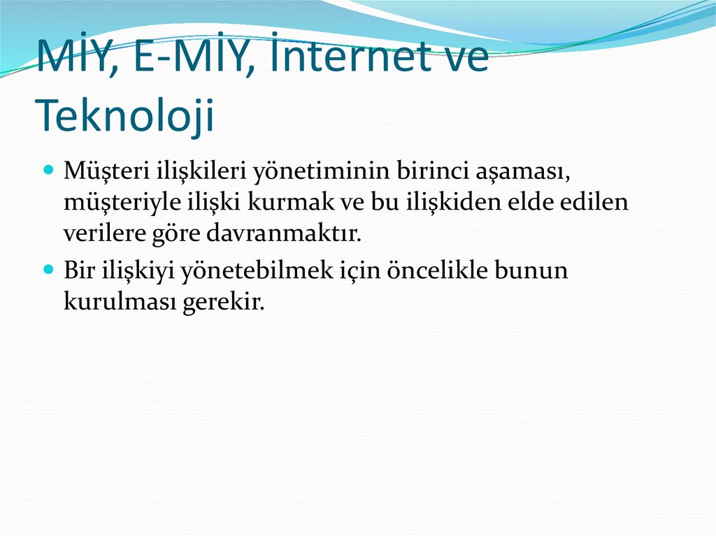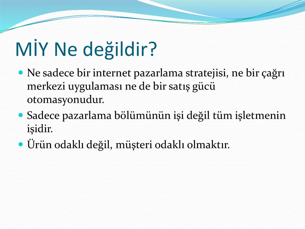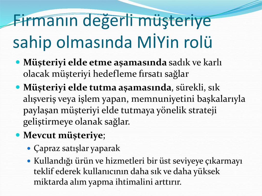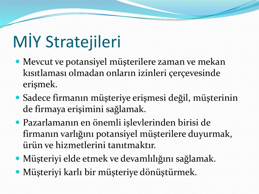 MİY, potansiyel müşteriyi elde etmek, elde edilenmüşteriyle yakın, etkileşimli ve sürekli bir iletişim