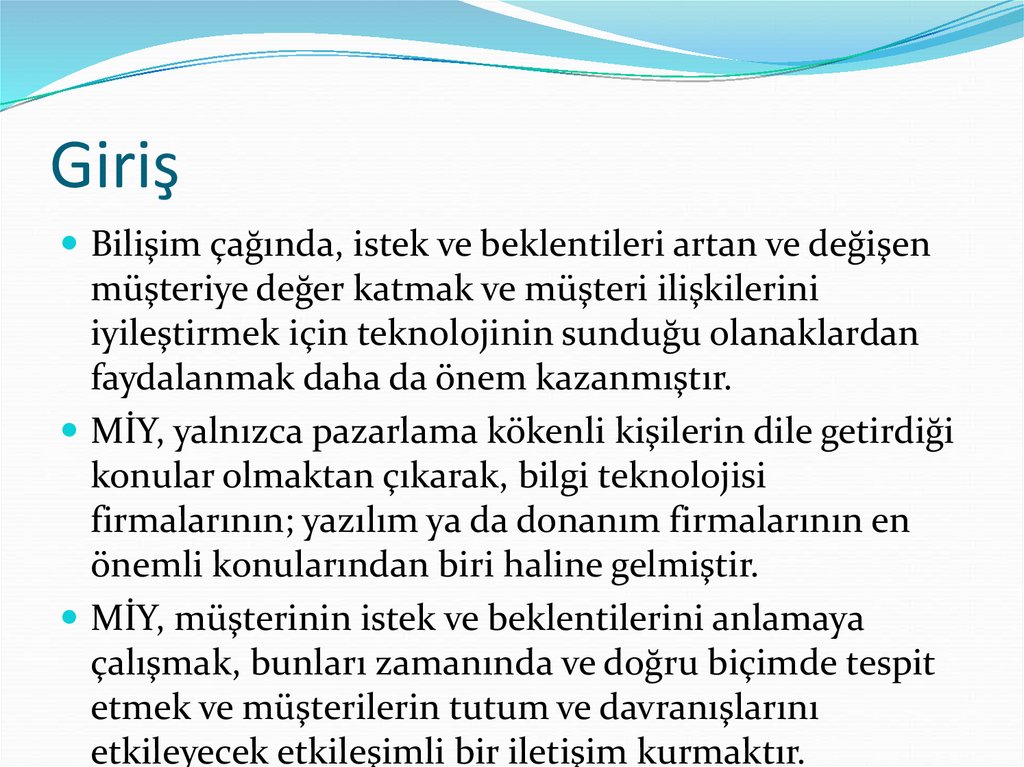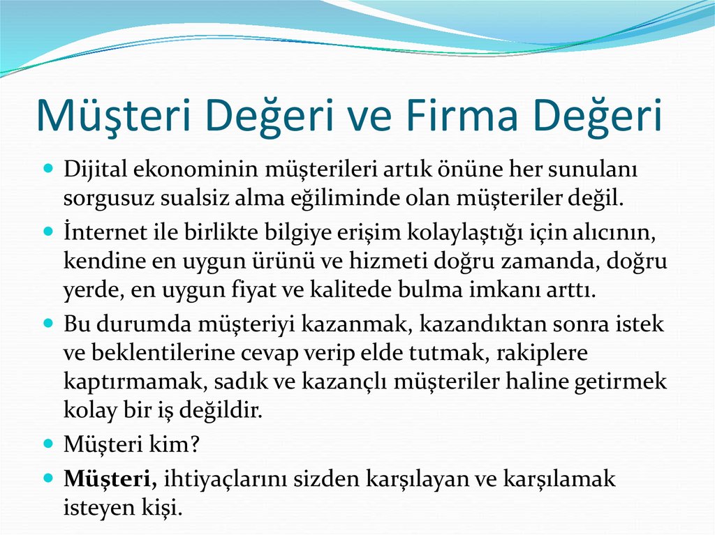 Bilişim çağında, istek ve beklentileri artan ve değişenmüşteriye değer katmak ve müşteri ilişkilerini