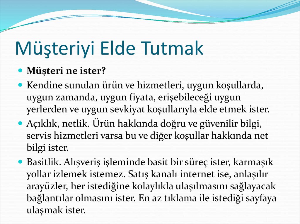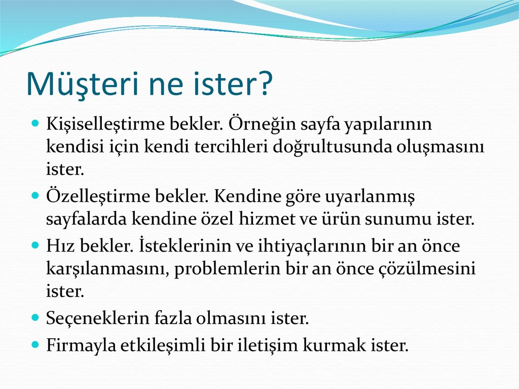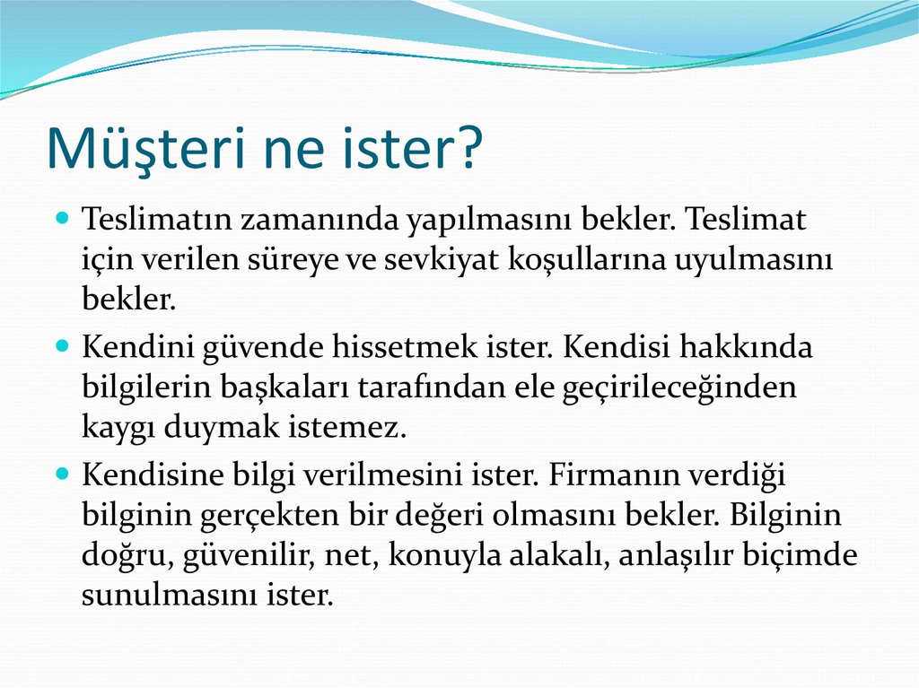 Müşteri ne ister?Kendine sunulan ürün ve hizmetleri, uygun koşullarda,