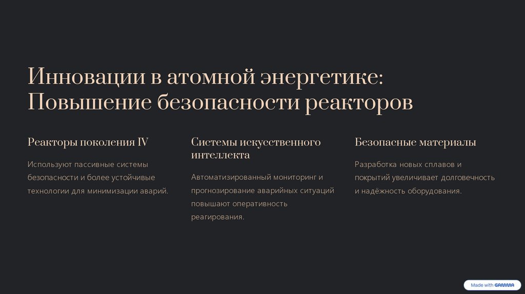 Инновации в атомной энергетике:Повышение безопасности реакторов