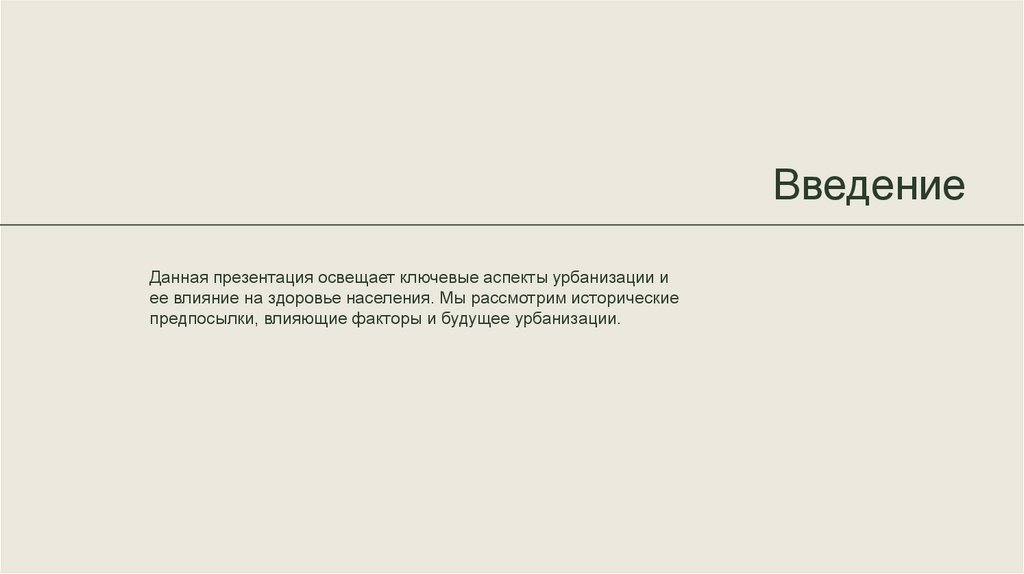 ВведениеДанная презентация освещает ключевые аспекты урбанизации и