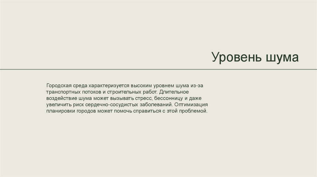 Уровень шумаГородская среда характеризуется высоким уровнем шума из-за
