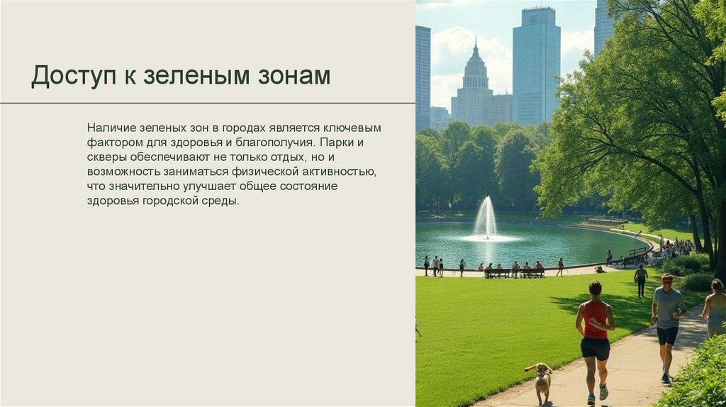 Доступ к зеленым зонамНаличие зеленых зон в городах является ключевым