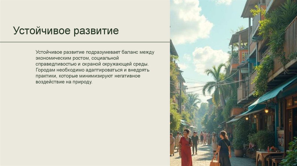 Устойчивое развитиеУстойчивое развитие подразумевает баланс между