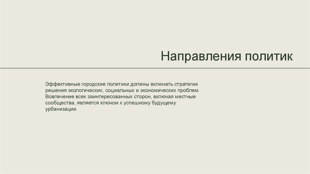 Направления политикЭффективные городские политики должны включать стратегии