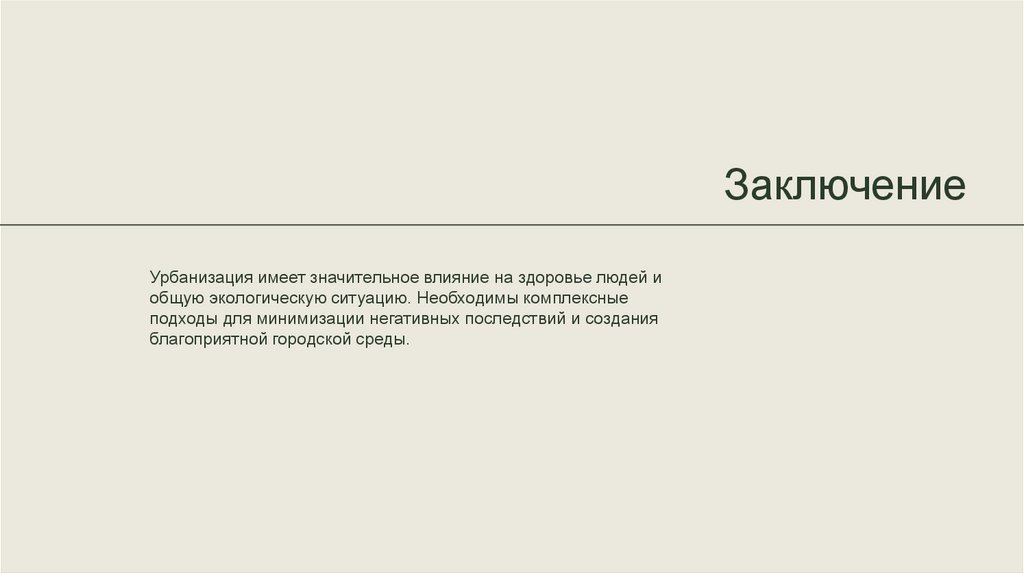 ЗаключениеУрбанизация имеет значительное влияние на здоровье людей и