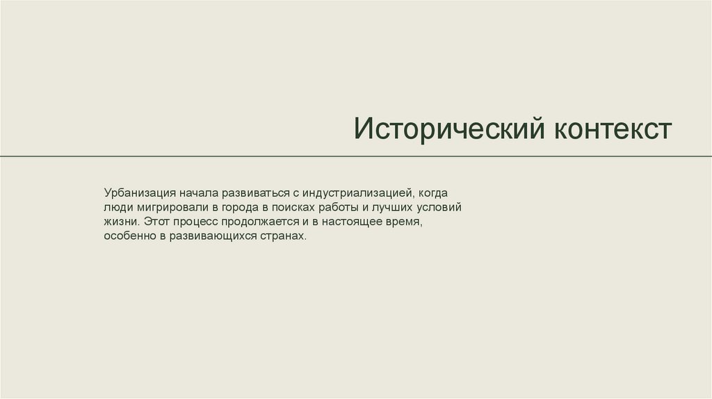 Исторический контекстУрбанизация начала развиваться с индустриализацией, когда