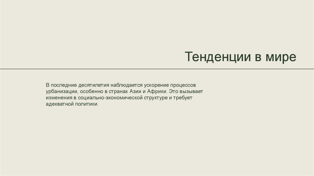 урбанизации, особенно в странах Азии и Африки. Это вызывает