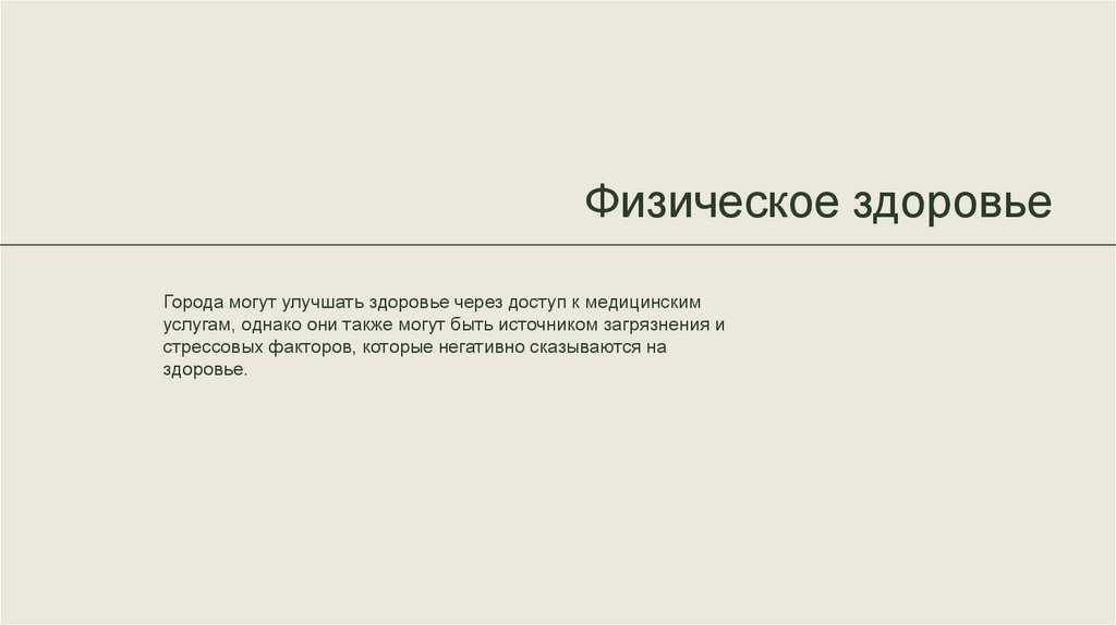 Физическое здоровьеГорода могут улучшать здоровье через доступ к медицинским