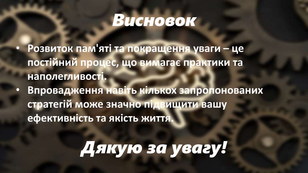 Висновок• Розвиток пам'яті та покращення уваги – це