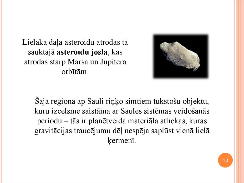 Viena no šādām objektu grupām ir asteroīdi – nelieli, cieti un,