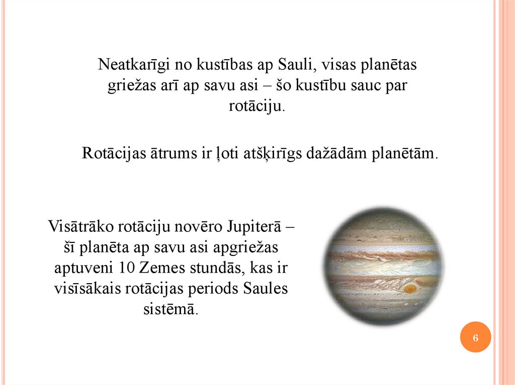 Rotācijas ātrums ir ļoti atšķirīgs dažādām planētām.