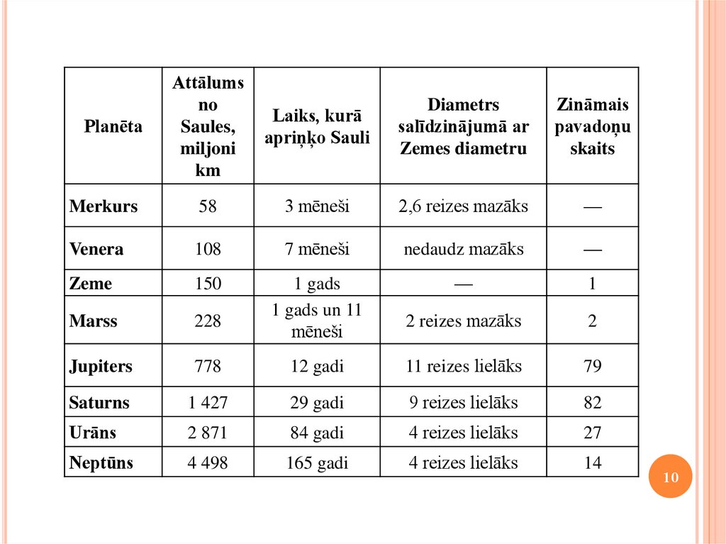 attālumā no Saules, vienu pilnu orbītu veic 365,25 dienās jeb