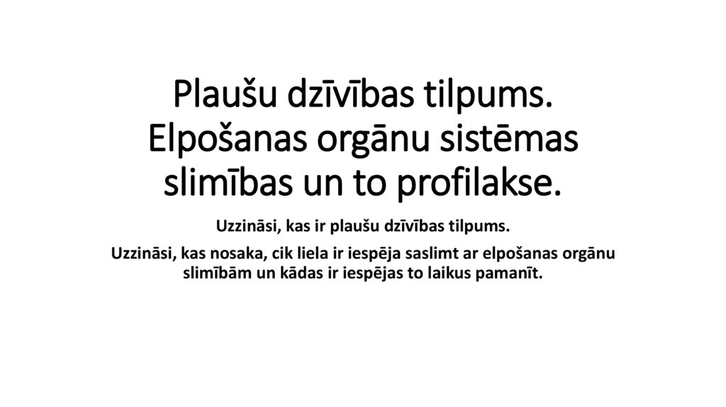 1. Plaušu dzīvības tilpums. Elpošanas orgānu sistēmas slimības un to profilakse.
