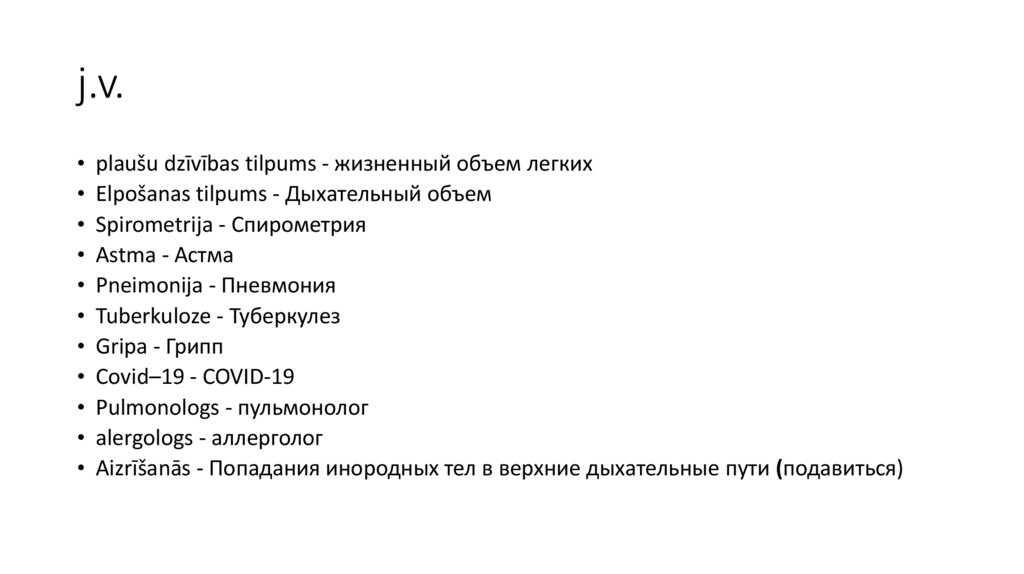 • plaušu dzīvības tilpums - жизненный объем легких• Elpošanas tilpums - Дыхательный объем
