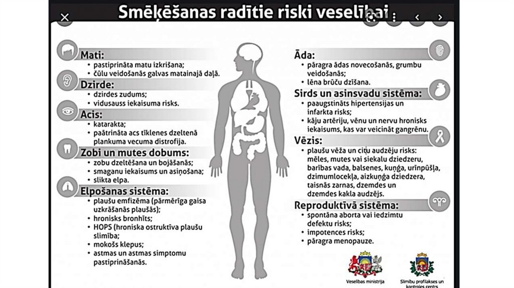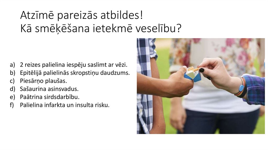 32. Atzīmē pareizās atbildes! Kā smēķēšana ietekmē veselību?