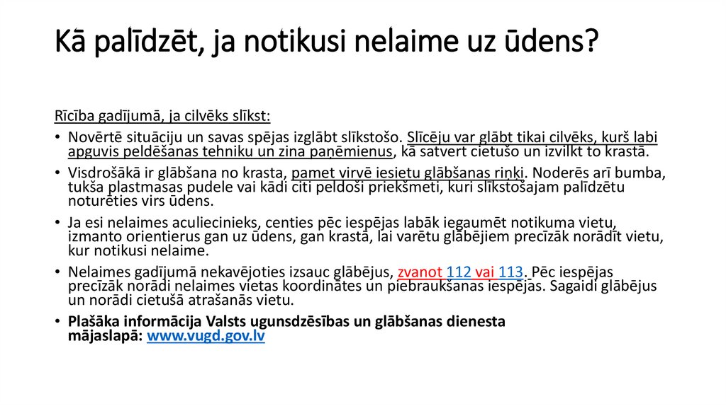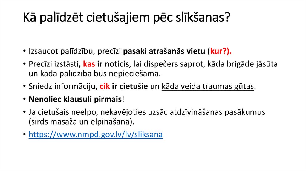 • Gadījumā, ja nezināsi, kā sniegt palīdzību, zvani uz 113, dispečercentra mediķi dos
