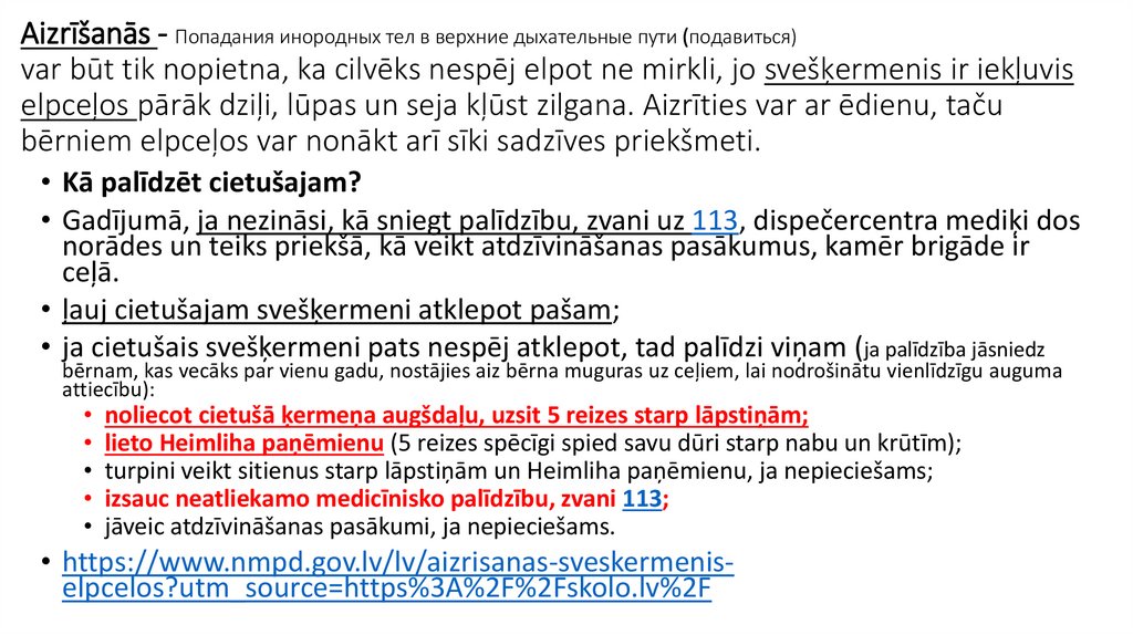 • Aizrīšanās - Попадания инородных тел в верхние дыхательные пути (подавиться)