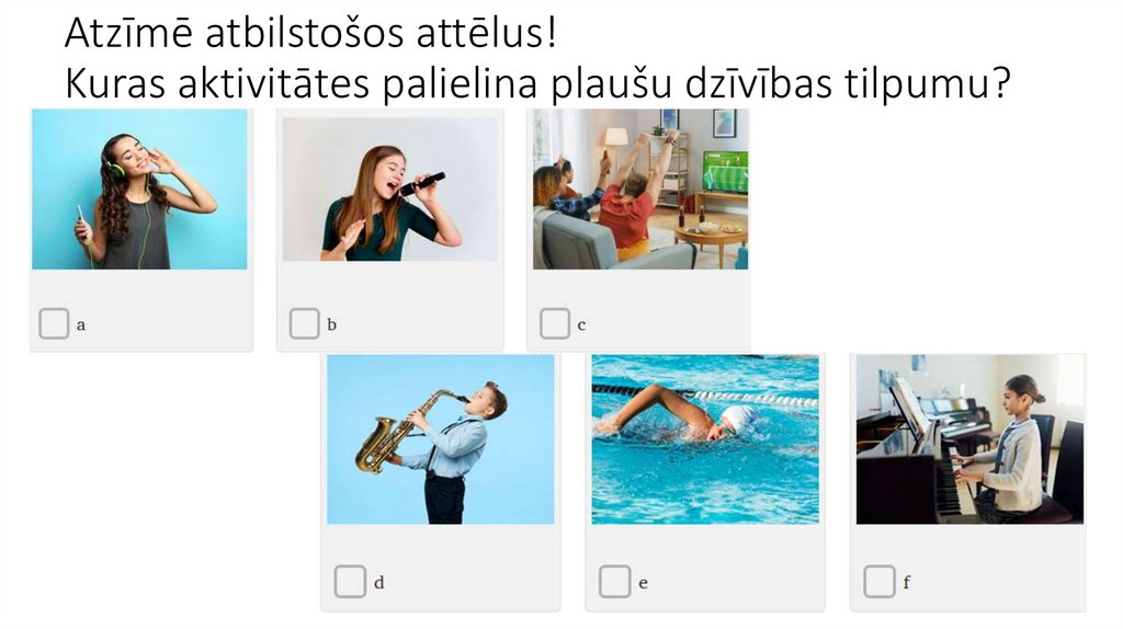 26. Atzīmē atbilstošos attēlus! Kuras aktivitātes palielina plaušu dzīvības tilpumu?